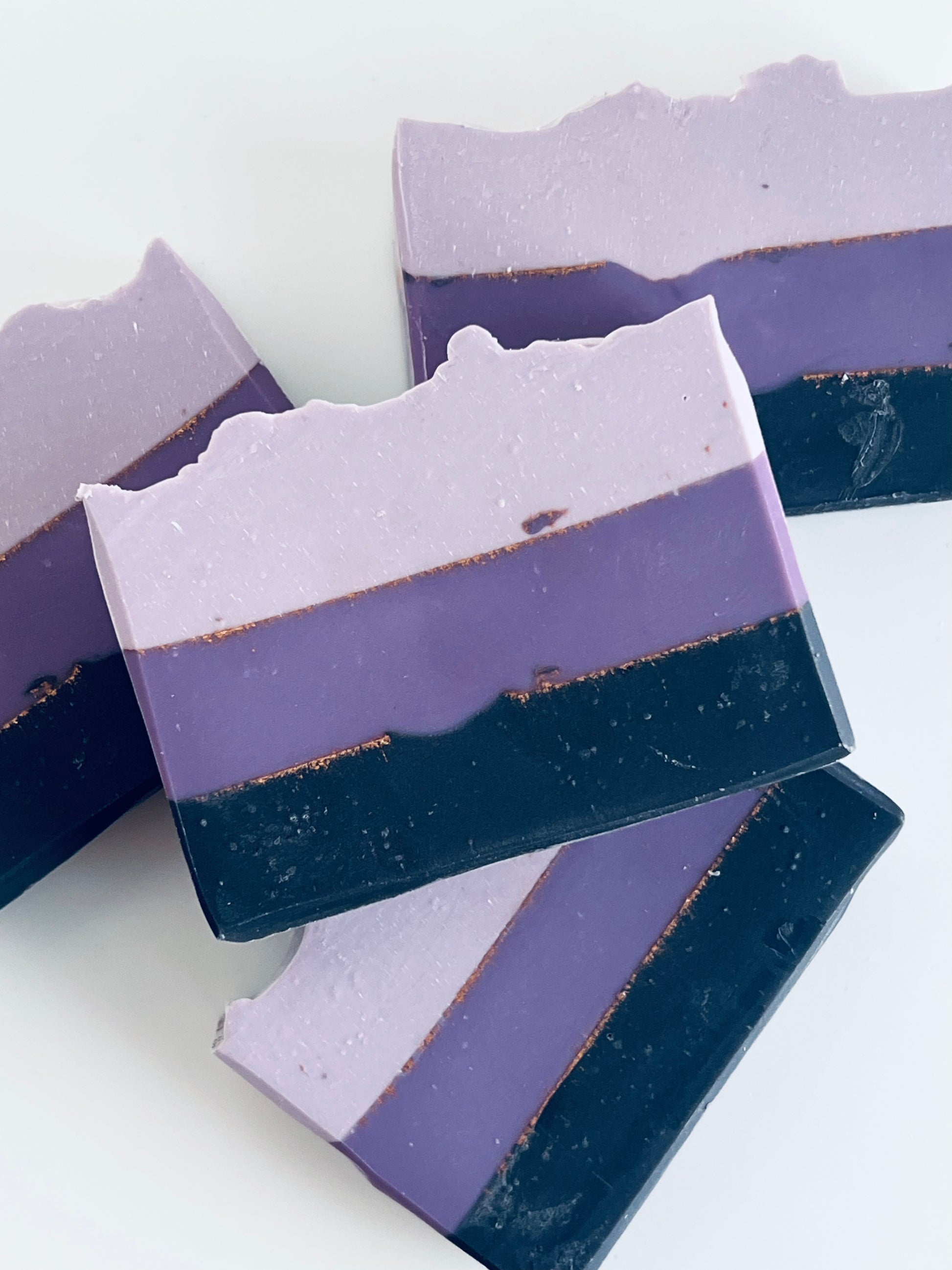 Ingredients: Tallow, Shea Butter, Olive Oil, Avocado Oil, Water, Sodium Hydroxide, Fragrance, Titanium Oxide (Mica).