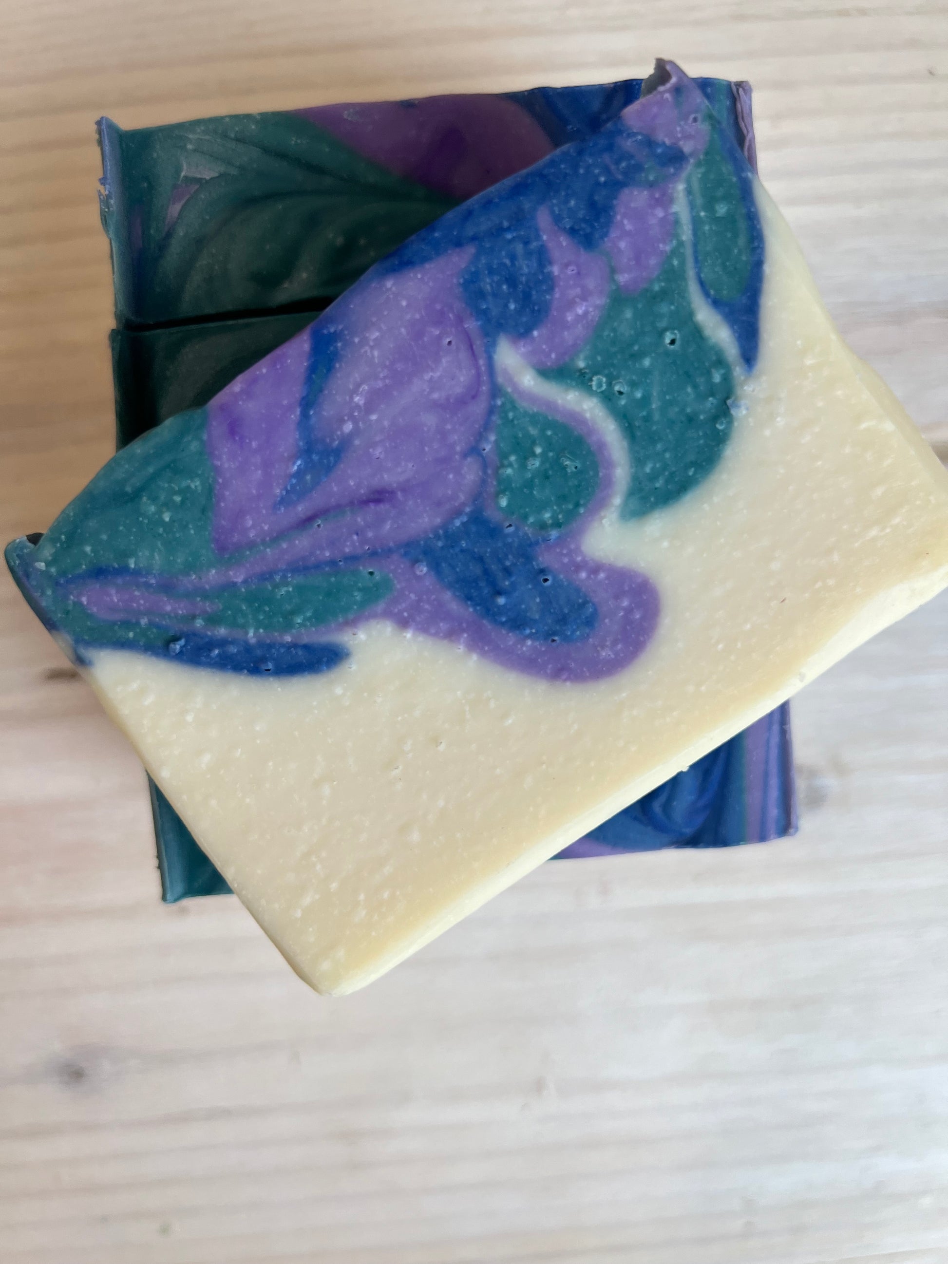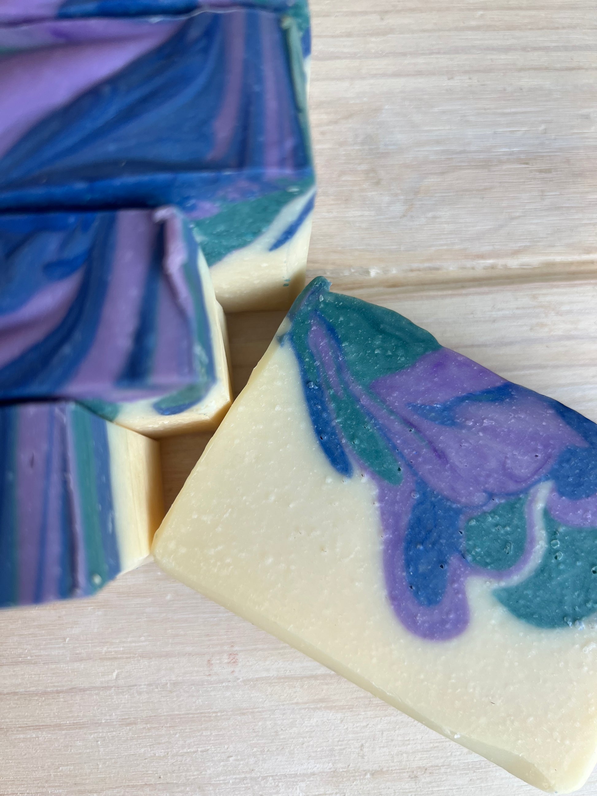 Ingredients: Tallow, Shea Butter, Olive Oil, Avocado Oil, Water, Sodium Hydroxide, Fragrance Oil, Mica, Titanium Dioxide.