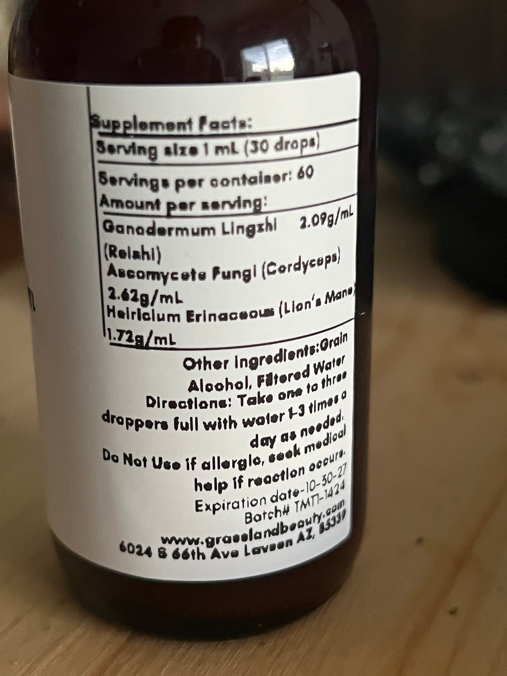Ingredients: High Grain Alcohol, Filtered Water, Ganodermum Lingzhi, Ascomycete Fungi, Heiricium Erinaceus