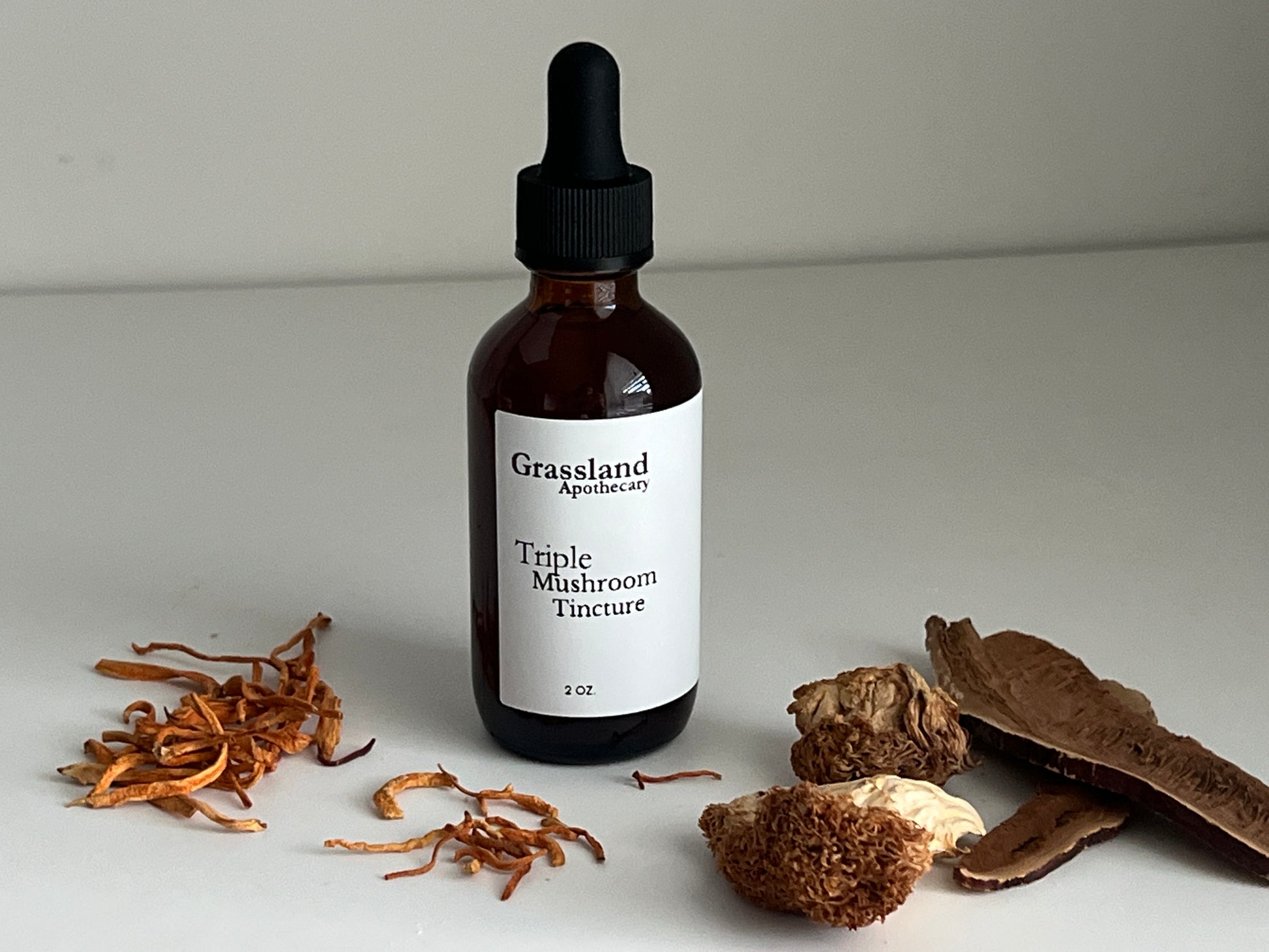 We utilize a slow dual extraction of Reishi, Lion's Mane, and Cordyceps. We extract the alcohol and water soluble constituents separately then combine them into one strong rich remedy, this is why you will see the mucilage settle on the bottom. This allows this tincture to be more effective in its potency. Reach for this tincture when you want to support your body with focus, brain health, digestion, anxiety/stress, sleep quality, and immune system responses.