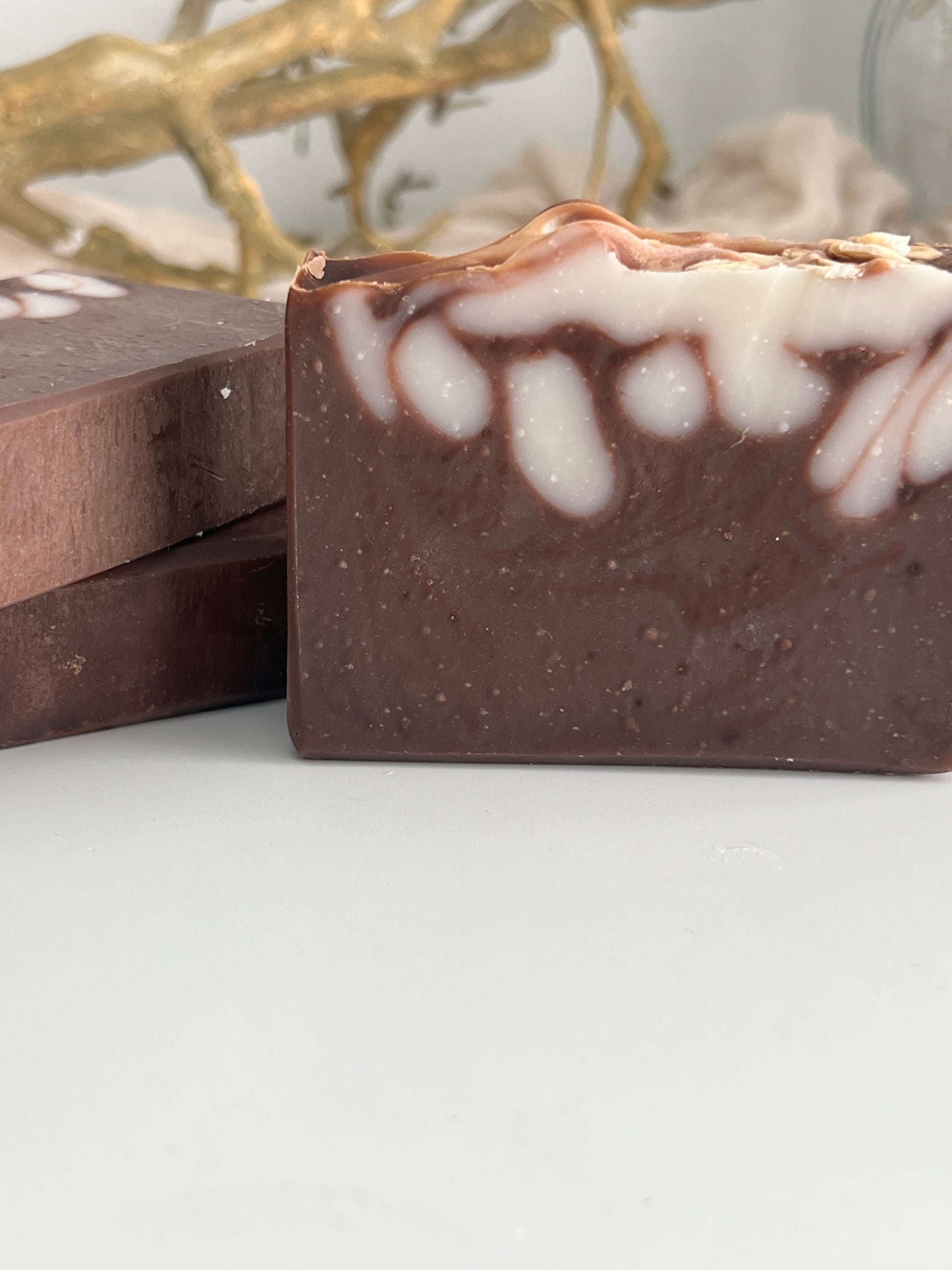 Ingredients: Tallow, Shea, Olive Oil, Water, Sodium Hydroxide, Coconut Oil, Avocado Oil, Castor Oil, Coconut Oil, Fragrance Oil, Mica, Iron Oxides, Dried Oats(Top)