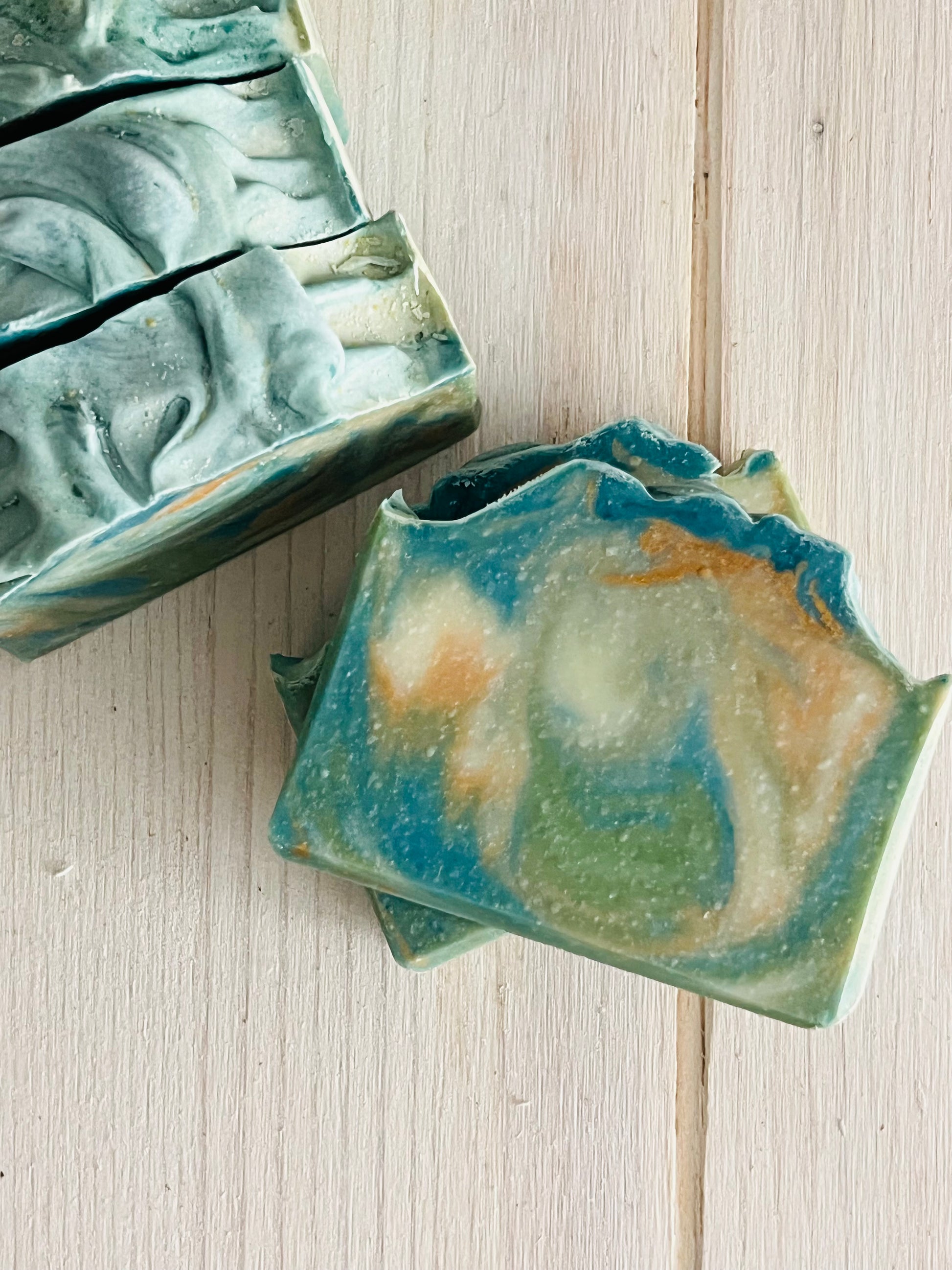This gorgeous soap smells like a fruity island getaway. With scents of citrus, raspberry, strawberry, and Jasmine. Its invigorating and gorgeous.